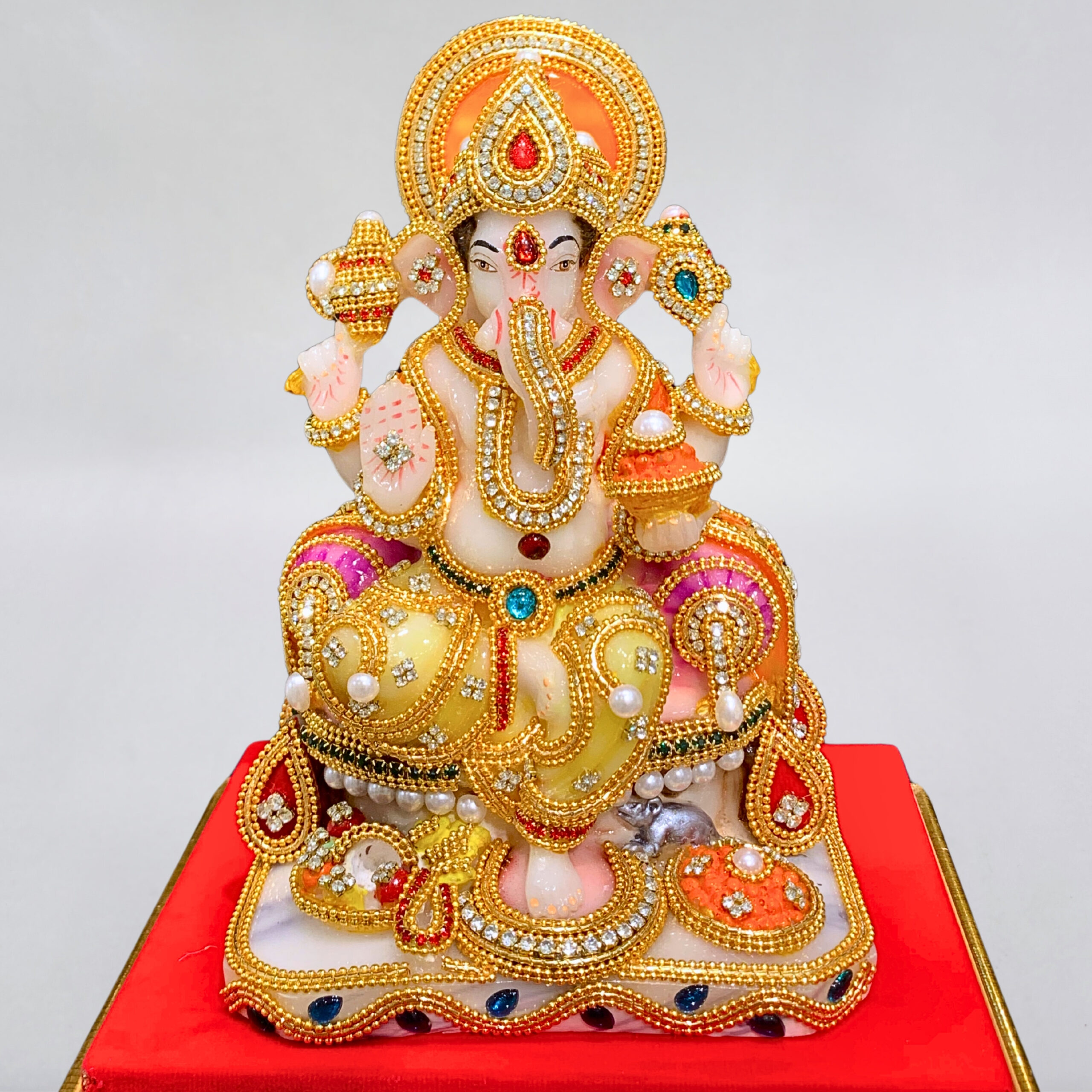 S PATNAIK GANESHA IDOL WITH JEWELLERY – AD STONE WORK | 24K GOLD POLISH | ACRYLIC BOX SETUP