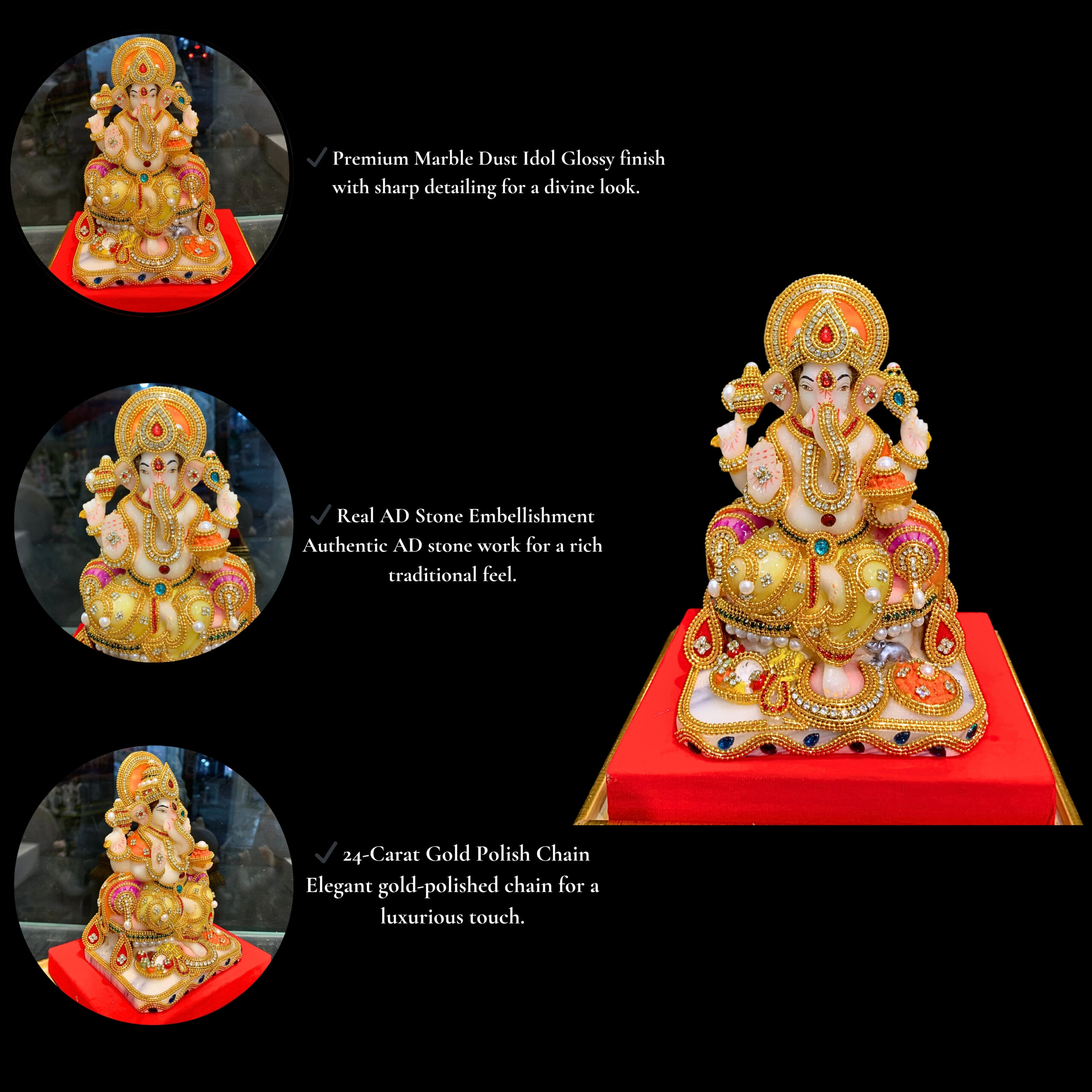 | GANESH JI MURTI JWELLERY WORK | GENERAL DETAILS: — PACKAGE CONTENTS: — SPECIAL FEATURES: |