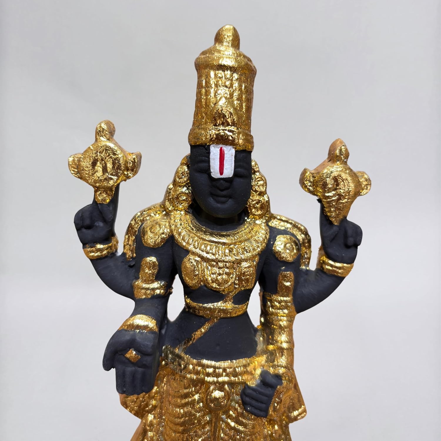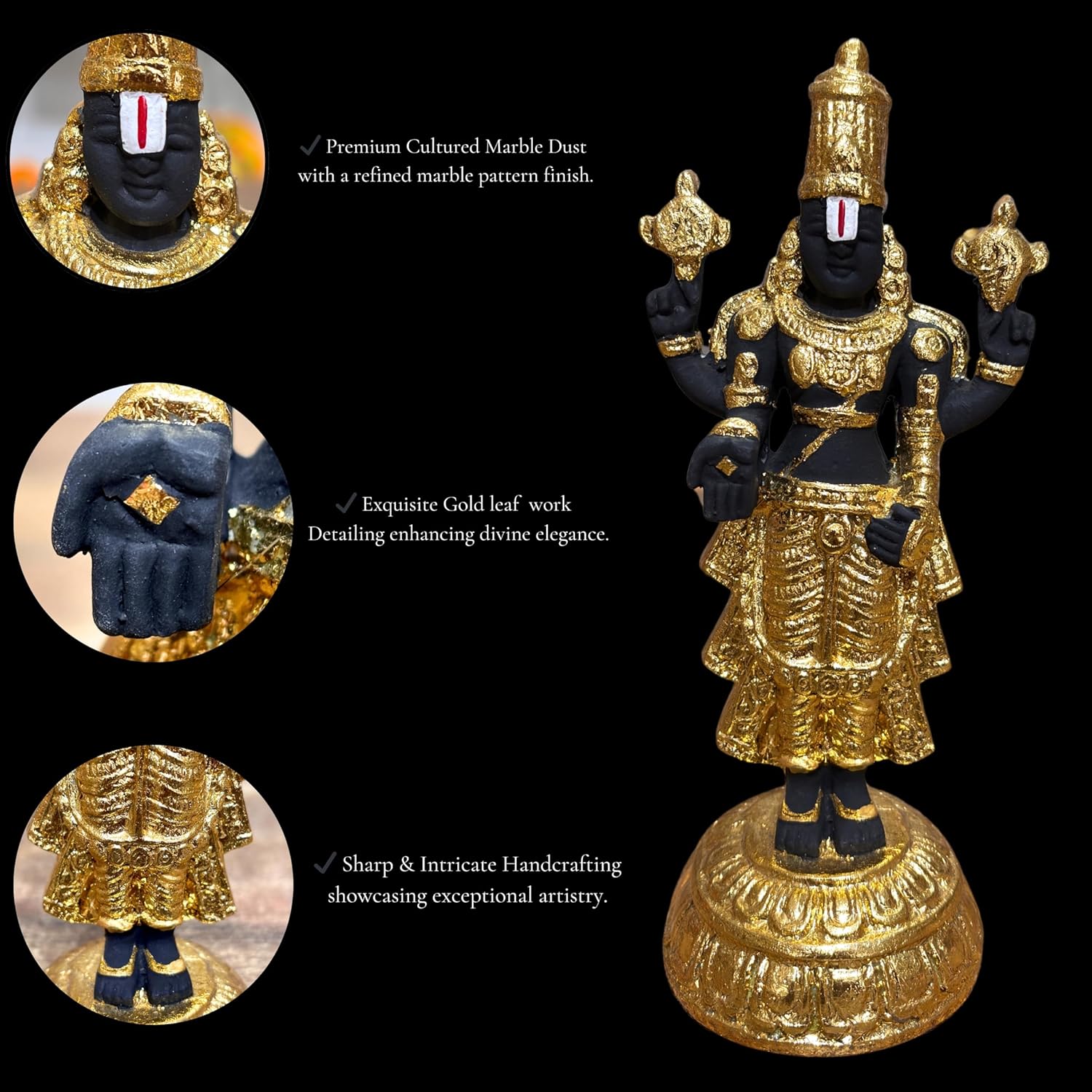 S PATNAIK 8 INCHES BLACK TIRUPATI BALAJI IDOL | MARBLE DUST | BLACK MATTE FINISH | GOLD LEAF WORK